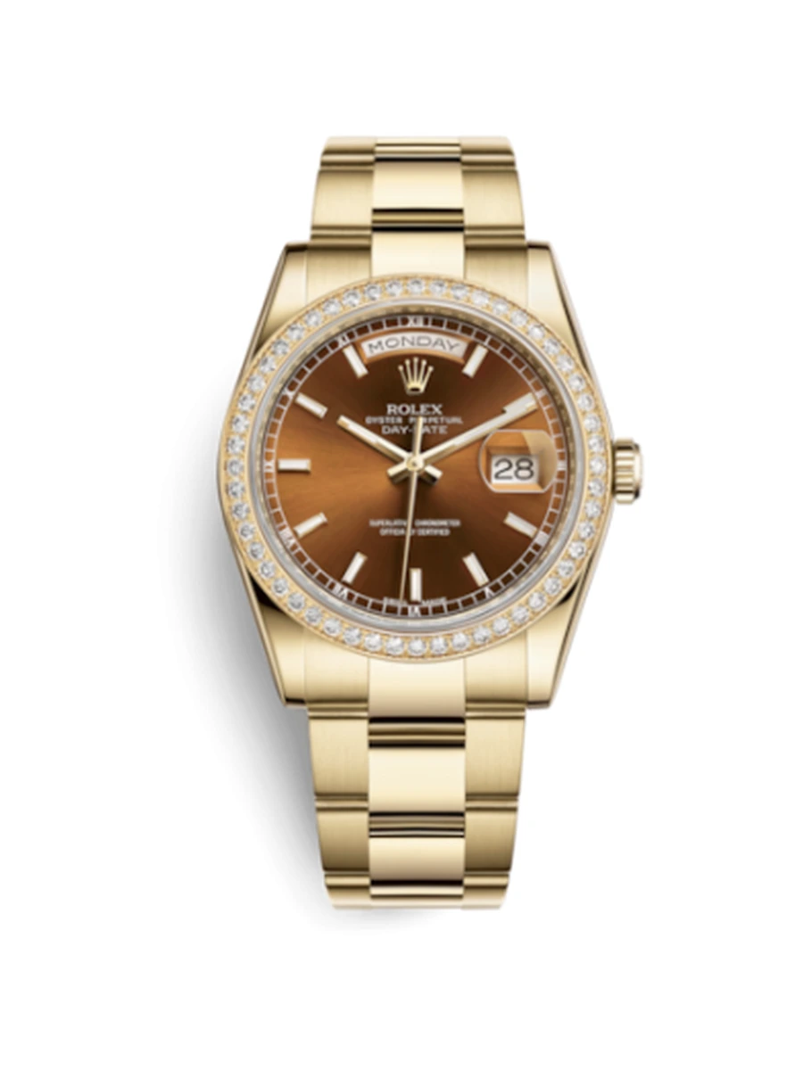 Day-Date 36 Yellow Gold Diamonds / Oyster / Cognac