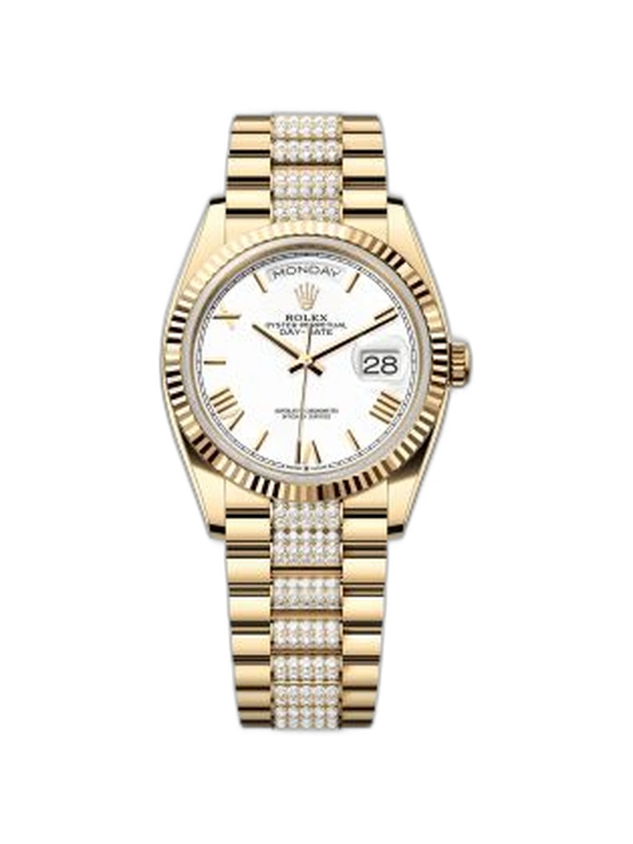 Day-Date 36 Yellow Gold / Fluted / White - Roman / President - Diamond