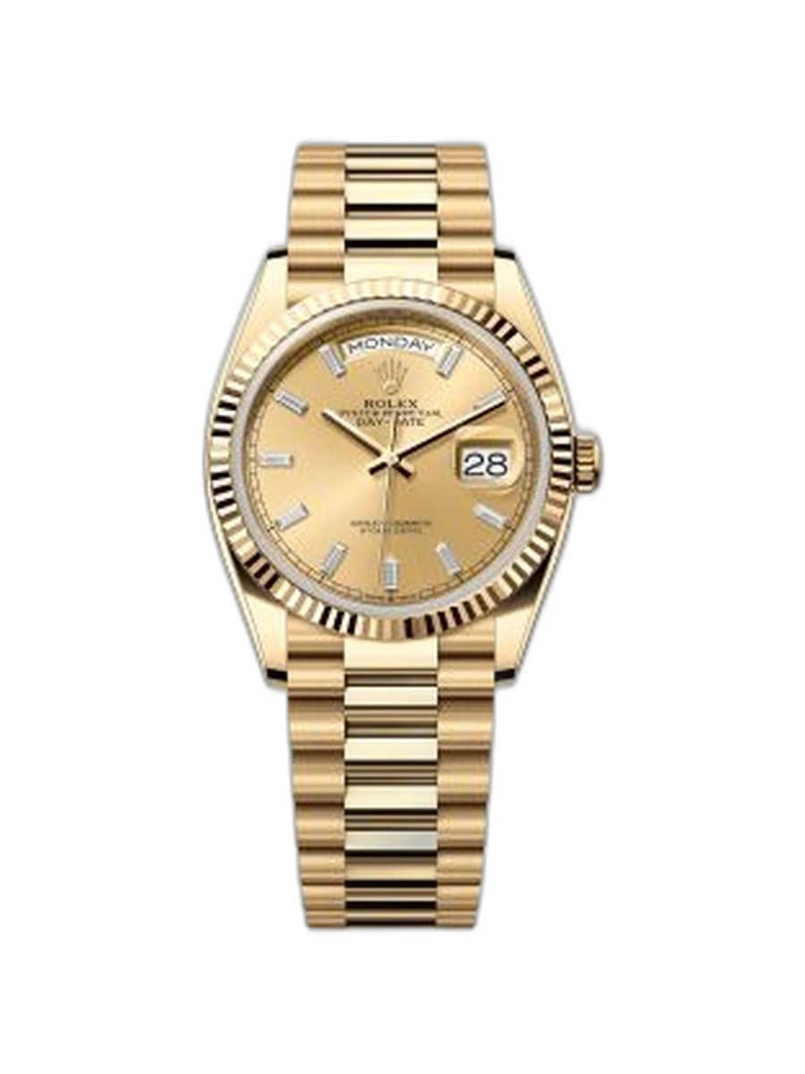 NameDay-Date 36 Yellow Gold / Fluted / Champagne - Baguette / President