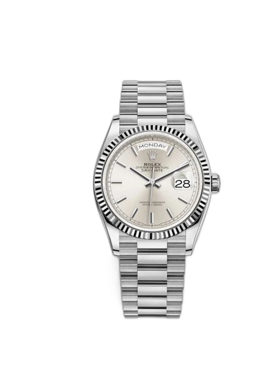 NameDay-Date 36 White Gold / Fluted / Silver / President