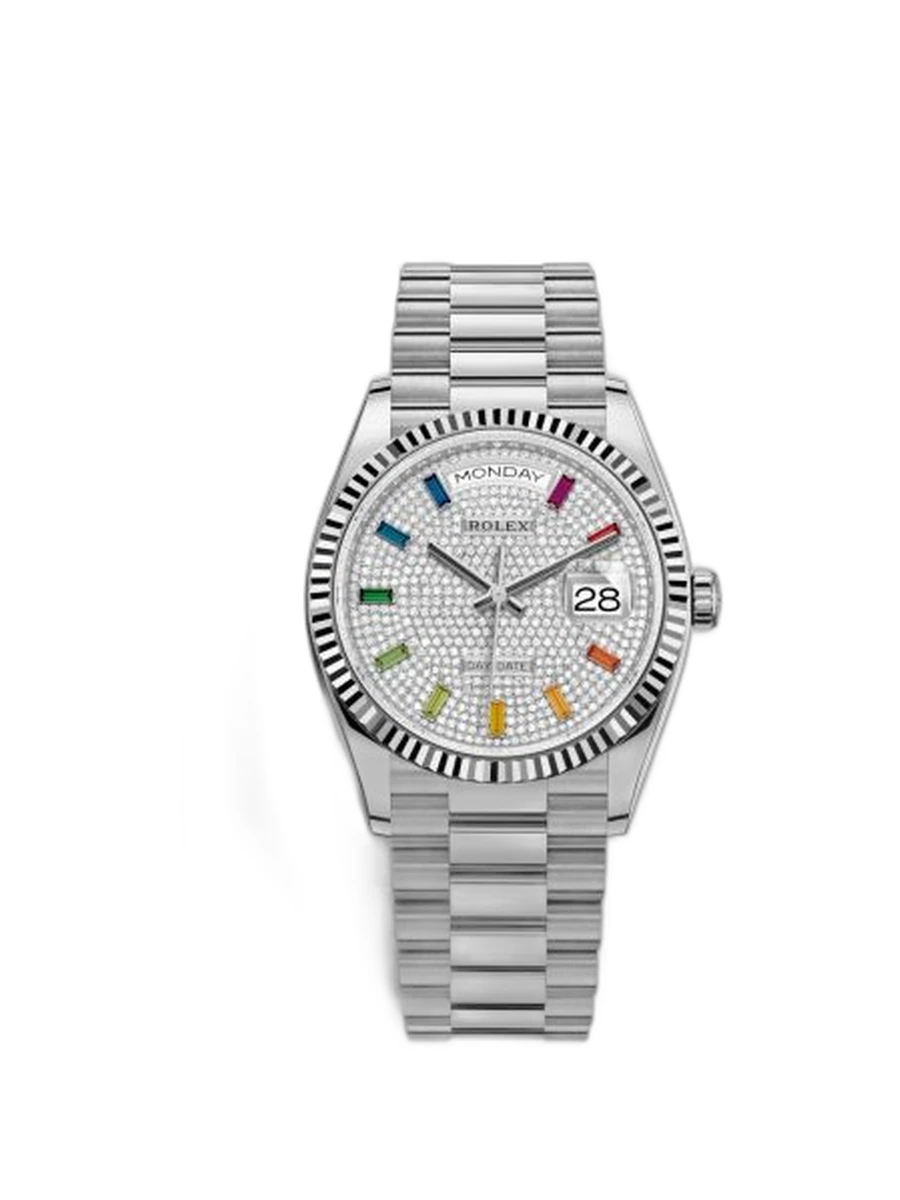 Day-Date 36 White Gold / Fluted / Paved-Rainbow / President