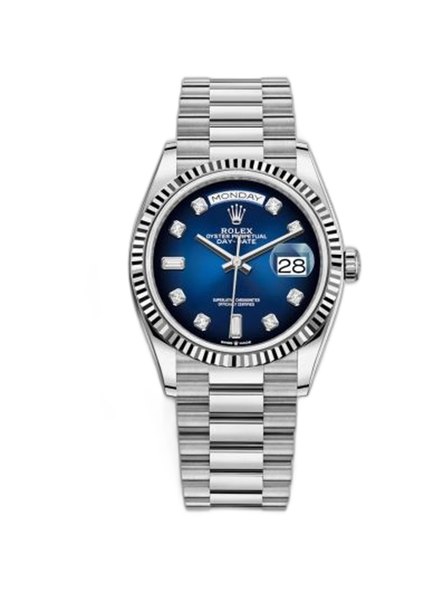Day-Date 36 White Gold / Fluted / Blue Ombré - Diamond / President