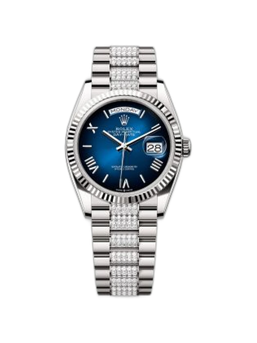 Day-Date 36 White Gold - Fluted / Blue Ombré - Roman / President - Diamond