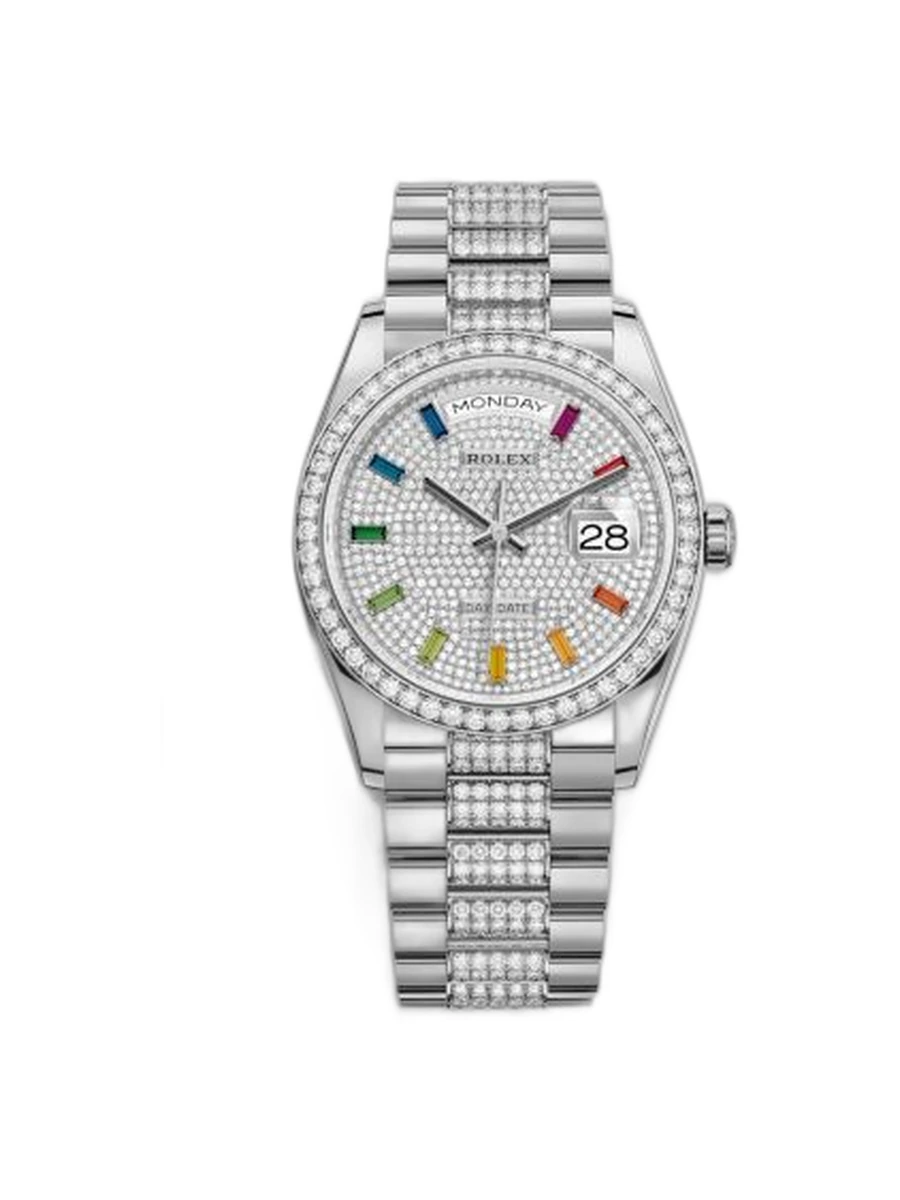 Day-Date 36 White Gold / Diamond / Paved - Rainbow / President - Diamond