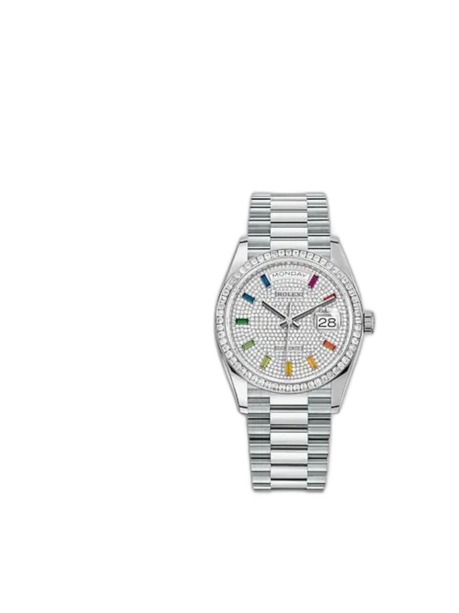 Day-Date 36 Platinum - Baguette / Paved - Rainbow / President